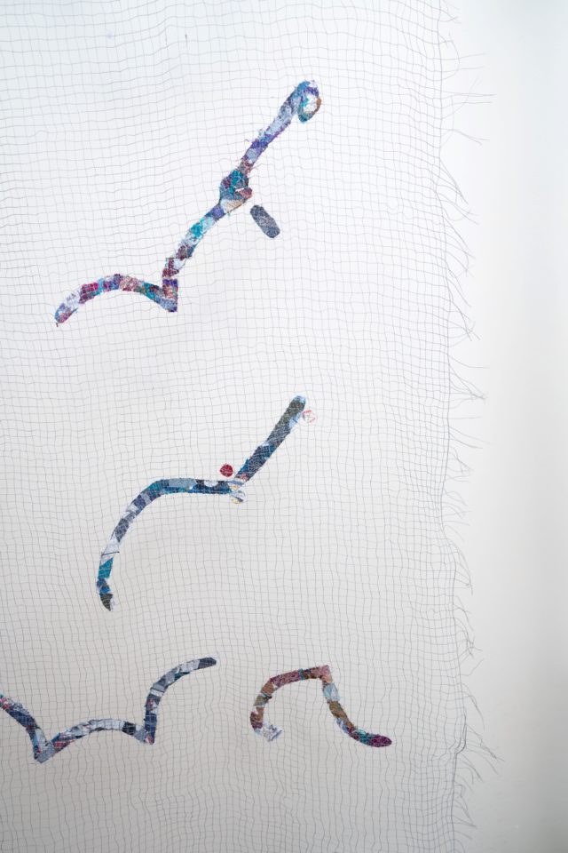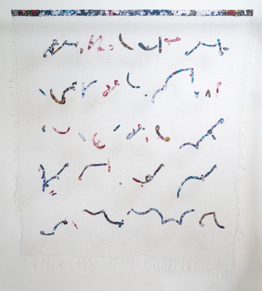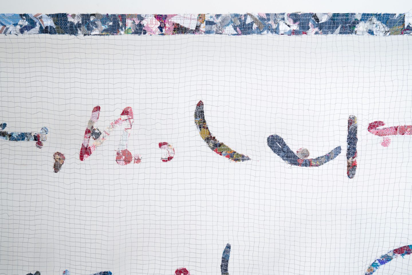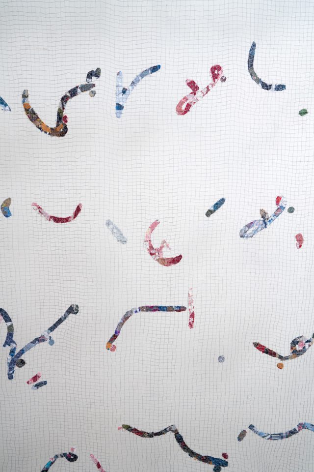 This artwork, made from discarded fabric scraps from the artist’s studio, stitched together to create symbols that represent sounds and words in Pitman’s shorthand, it’s an insight for many of us, to the world of those who can’t read.